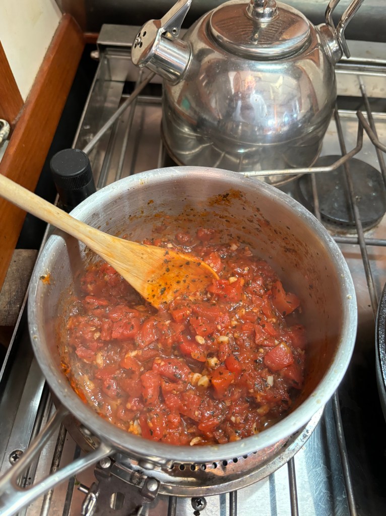 Step 3: Preheat the oven. It should be as hot as you can get it. On Andante that is just over 400 deg F and it takes a solid 30 minutes to reach that temperature. In a dirt house you could easily reach 500 F. Whatever. You’ll be watching closely to see when your pizza is done and a hotter oven will just get you there faster.