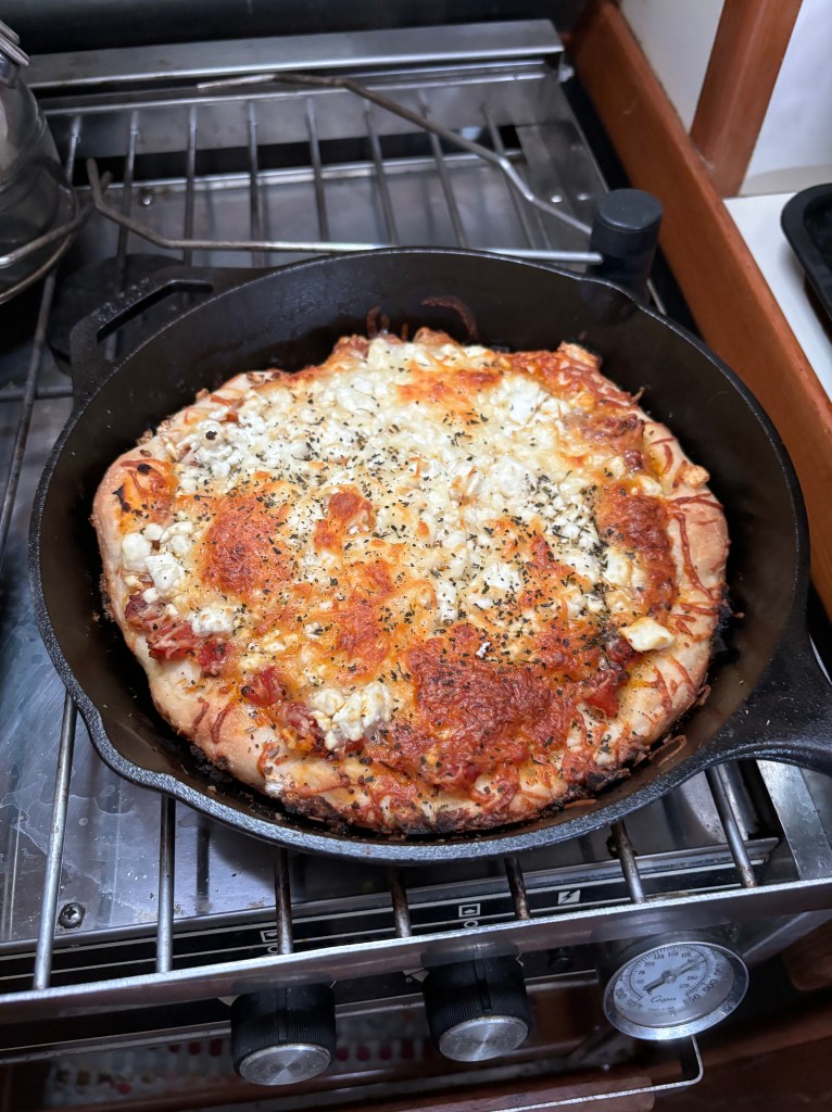 Its Friday. We’re on the mooring in Buzzards Bay and its cold and windy. So why not bake a pizza?