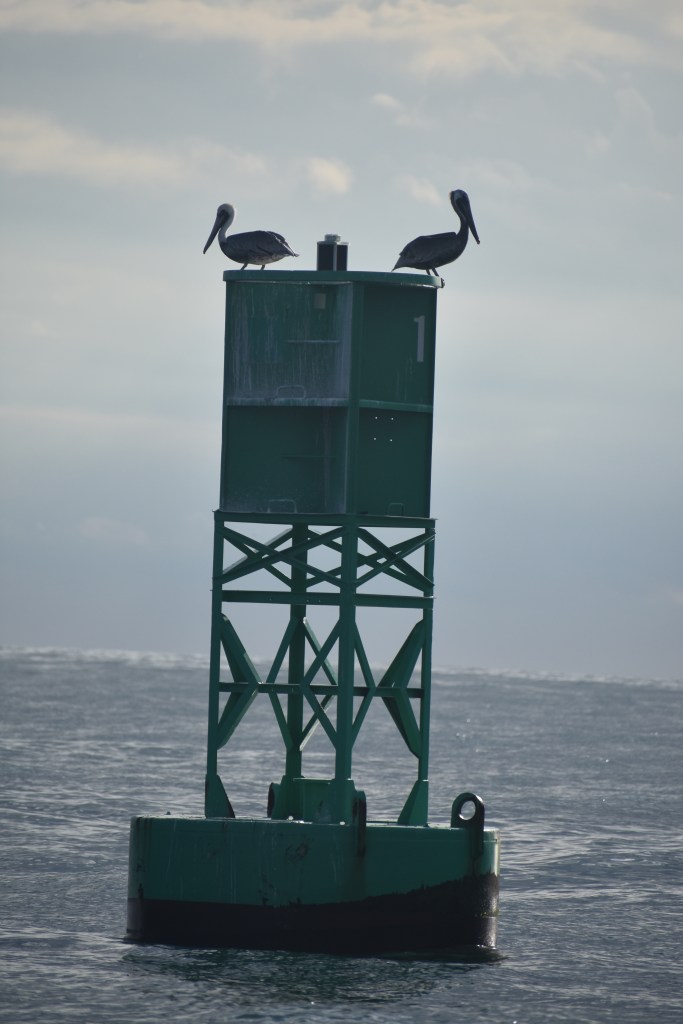 With the glassy conditions I was disappointed to see no whales. But I was ecstatic to see some brown pelicans. These are generally warm-climate birds that migrate to the mid-Atlantic states in summer and are very rarely seen as far north as Cape Cod. More evidence that we are making significant progress southward.