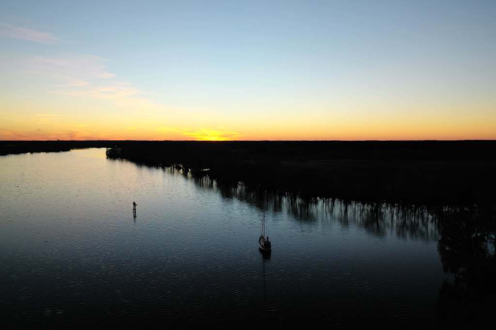 Our trip down the long and winding ICW from Beaufort has not been unpleasant. But it was definitely a pleasure to get out into deeper water and really sail for the first time in several months. After an enjoyable two nights dockside in Charleston (and many long walks around the city) we took advantage of a brief weather window to run offshore South Carolina and Georgia to the St Mary’s River inlet and Fernandina Beach, Florida. There was great sailing weather for the first third of the 28 hour trip. We covered many miles on a three-sail broad reach about 5 miles offshore before the wind got fickle and died. That left us with an overnight motor in glassy seas under a nearly-full moon. Not unpleasant at all.